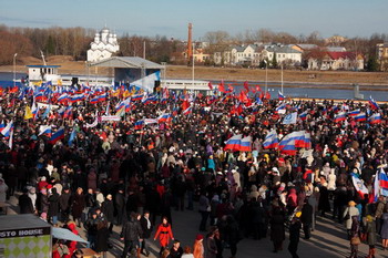 12 марта на площадке рядом с Новгородским академическим театром драмы имени Ф.М. Достоевского прошел митинг в поддержку русскоязычного населения Украины, жителей Крыма.